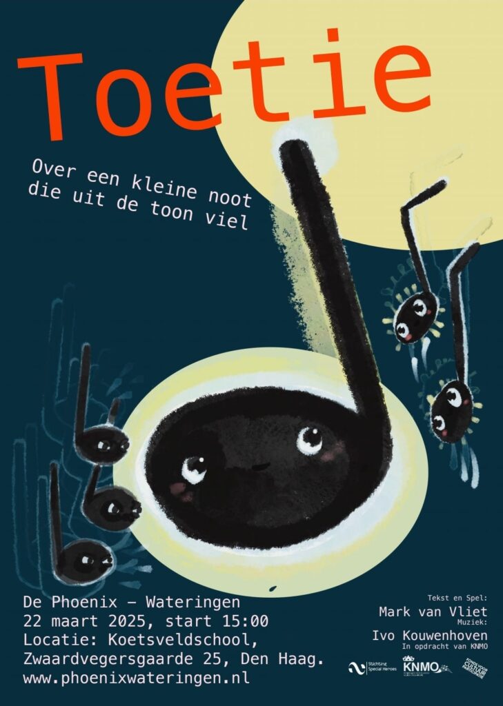 Toetie is de betoverende muziektheatervoorstelling voor kinderen waarin humor, avontuur en een diepere boodschap samenkomen. Theatermaker Mark van Vliet neemt je tijdens de voorstelling mee in het verhaal van Toetie, de kleine kwartnoot met een grote nieuwsgierigheid.